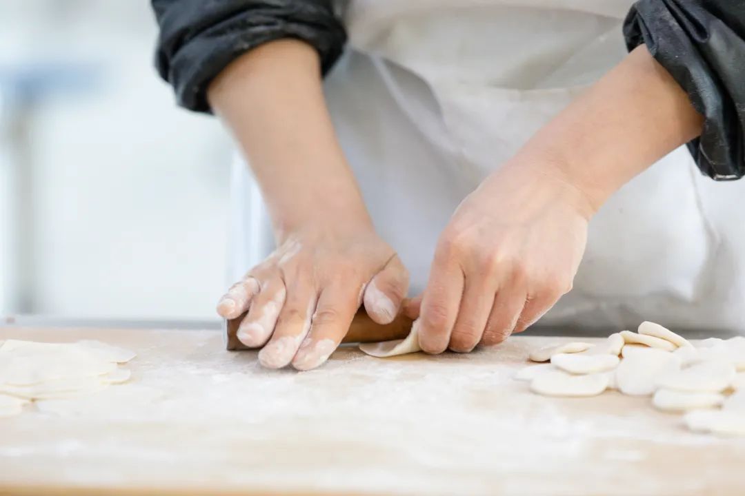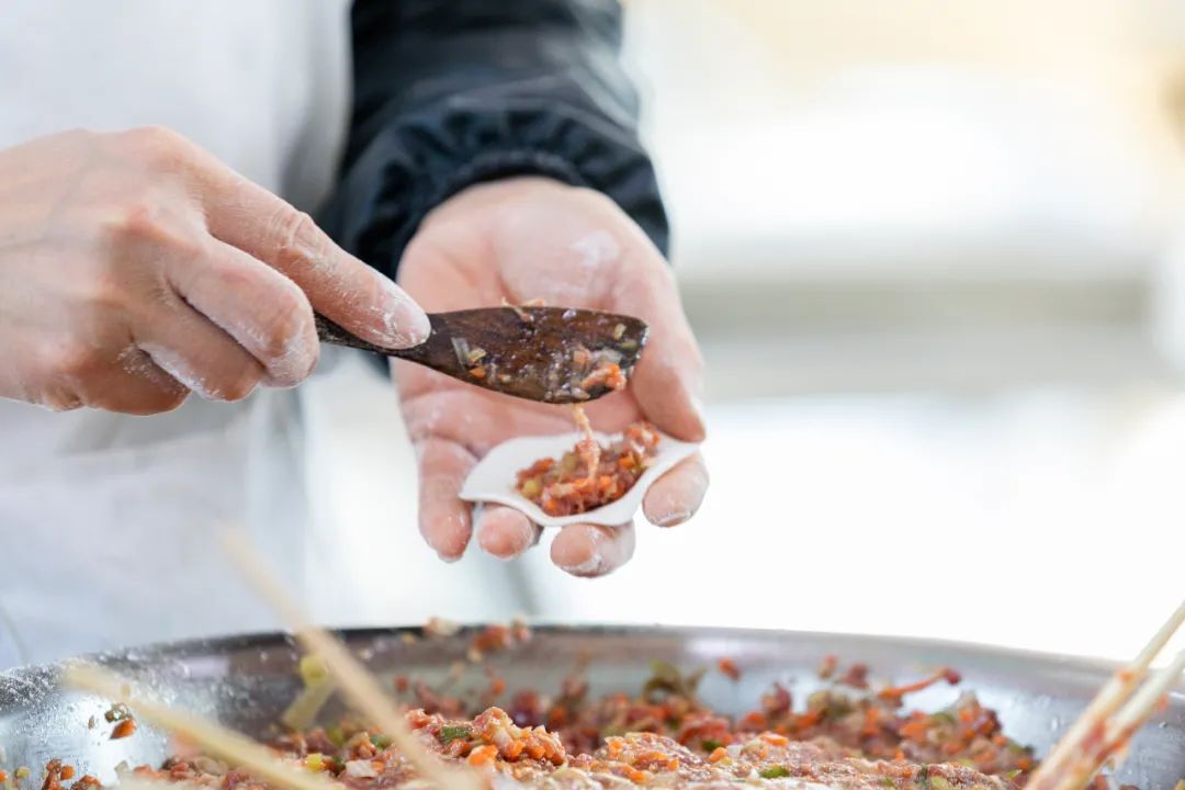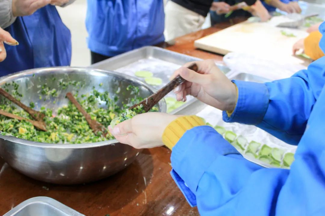 活動中,大家圍坐在一起,鋪桌子、切菜、調餡、包餃子,現場氣氛火熱。