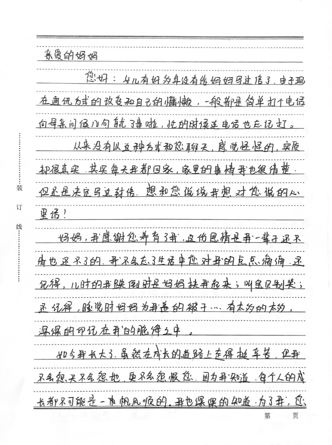 ——“媽媽,兒子已經(jīng)長大,和兒媳一定會好好孝敬您二老的。祝您身體健康,萬事如意!”