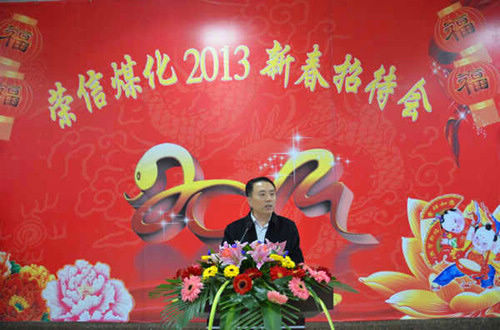 司相芳總經理為招待會致祝酒辭,他代表公司并以個人的名義,向出席招待會的各位嘉賓、支持榮信發展的各級領導、各界朋友和廣大客戶,特別是全體員工及員工家屬表示了新年的祝福、衷心的感謝和誠摯的問候。司總表示,過去的一年,公司生產經營穩步提升,順利完成各項任務目標,各版塊工作均取得優異成績,躋身“2012中國民營企業500強”和“2012中國民營企業制造業500強”,銷售收入突破一百億大關,呈現出穩步協調發展的良好態勢。這些成績的取得,凝聚著公司全體員工的心血和汗水。他號召大家在2013年繼續擔起榮信煤化發展的大任,自強不息,拼搏作為。司總鄭重宣布了2013年大家的薪資還會有所新增的消息,他承諾,只要大家凝心聚力,歷練成長,團結拼搏,苦干實干,一定會讓大家擁有以“經濟收入增長感、職業生涯穩定感、人文環境親情感、團隊自身成長感、幸福指數提升感”為內容的歸屬感,一定會讓大家在榮信找到家的感覺,一定會讓大家的日子越來越好!