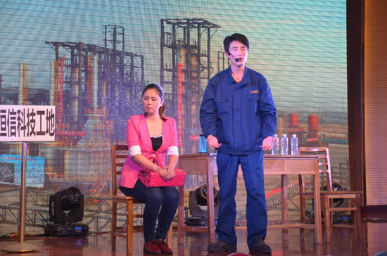 在大家熱烈的掌聲中,司相芳總經理作新年致辭。司總首先代表公司向大家表示衷心感謝并致以節日的祝賀,向奮斗在生產一線的全體員工致以新春的祝福和親切問候。司總講到,公司舉辦文藝晚會,旨在進一步凝心聚力,乘風破浪,永往直前,挑戰2015。并強調,節日期間要千方百計確保安全,確保思想到位、組織人員到位、管理到位、信息溝通到位,徹底排查隱患,確保過一個安全、愉快、祥和的春節。最后,司總給大家拜早年。