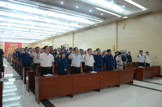 本網訊 飲水思源沐黨恩,同心共筑榮信夢。7月1日,公司舉行慶祝建黨94周年重溫入黨誓詞 踐行“三嚴三實”活動,慶祝黨的94歲生日。董事長王謹參加活動并作重要講話,活動由公司副總經理高小明主持,副總經理李繼新、吳海浪及公司全體黨員、預備黨員、入黨積極分子共100多人參加。