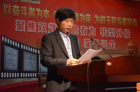 司相芳總經(jīng)理在會議上以《以奮斗者為本 ,以創(chuàng)新者為榮,為敢于擔(dān)當者擔(dān)當,聚焦雙效 、渡危有為 、轉(zhuǎn)型升級、 持續(xù)發(fā)展 、實干興企》為主題,作了重要講話。司總回顧2015年的總體工作時講到,2015年企業(yè)倒閉潮、破產(chǎn)潮,老板跑路潮,職工失業(yè)潮等凜冽的經(jīng)濟寒風(fēng),無情地席卷各行各業(yè)。在此形勢和環(huán)境下,公司取得了不凡的業(yè)績,仍保持了同行業(yè)最好水平。蒽油加氫項目馬上開車生產(chǎn),碼頭建設(shè)如期推進。安全環(huán)保工作成績突出,被授予“全省安全生產(chǎn)基層基礎(chǔ)工作先進企業(yè)”、“濟寧市落實安全生產(chǎn)主體責(zé)任示范企業(yè)”等榮譽稱號。能源管控中心投入運行,節(jié)能降耗工作上了新水平。省級企業(yè)技術(shù)中心、濟寧市煤基清潔燃料工程技術(shù)研究中心獲批,技術(shù)創(chuàng)新平臺有了新提升。新獲“濟寧市勞動關(guān)系和諧4A級企業(yè)”、“濟寧市五一勞動獎狀”、“濟寧市突出貢獻企業(yè)”、“鄒城市突出貢獻企業(yè)”等殊榮,首次入圍山東企業(yè)100強,再次被評為中國民企500強和中國民企制造業(yè)500強,企業(yè)地位日益趨升,榮信品牌效應(yīng)突顯。三嚴三實教育成果顯著,隊伍建設(shè)成效明顯。隊伍、收入雙穩(wěn)定,榮信人的自豪感、幸福感和歸屬感倍增。“平安、誠信、和諧、魅力”榮信的美譽當之無愧!我們完全有理由為多年來所付出的努力、所取得的成果感到驕傲和自豪!