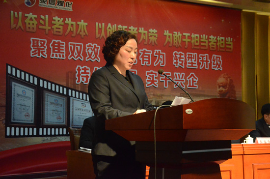 2月25日下午,公司2016年度工作總結(jié)表彰動員暨干部員工作風(fēng)建設(shè)大會在多功能廳隆重召開。中層以上領(lǐng)導(dǎo)干部、基層管理人員及部分員工代表參加。原濟寧市人大副主任、濟寧市儒家文化與企業(yè)發(fā)展協(xié)會名譽會長、公司獨立董事潘漢久,山東恒信集團、山東恒信焦化的部分領(lǐng)導(dǎo)應(yīng)邀參加大會。會議對去年工作中涌現(xiàn)出來的先進集體和先進個人等進行了表彰,總結(jié)了2015年的工作成績、經(jīng)驗和不足,并對2016年的任務(wù)目標進行了部署。會議由董事長王謹主持,總經(jīng)理司相芳作了重要講話。公司領(lǐng)導(dǎo)高小明、吳海浪、杜漢雙、葉軍、李繼新、于先長等在主席臺就座。