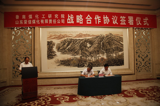 8月25日上午,公司與魯南煤化工研究院在運河賓館3樓會議室簽署戰(zhàn)略合作協(xié)議,濟寧市政府副市長張勝明,濟寧市政府辦公室副主任劉佳琦,鄒城市政府市長謝成海,公司副總經(jīng)理高小明、總工程師杜漢雙,魯南煤化工研究院常務副院長黃凌端,公司及魯南煤化工研究院有關同志出席簽約儀式。簽約儀式由濟寧市質監(jiān)局局長、魯南煤化工研究院院長朱運旭同志主持。