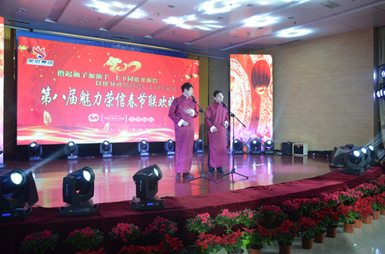 猴年大吉辭舊歲,金雞報曉迎新年。元月25日晚,集團公司多功能廳內燈光閃耀,歌舞飛揚,洋溢著濃郁的節日氣氛,集團公司第八屆“魅力榮信”新春文藝晚會在這里隆重上演。山東恒信集團董事長、山東榮信集團總經理司相芳,山東恒信集團、山東恒信焦化有限公司及公司部分領導,與集團公司員工代表共計500多人一起觀看演出,喜迎雞年新春的到來。