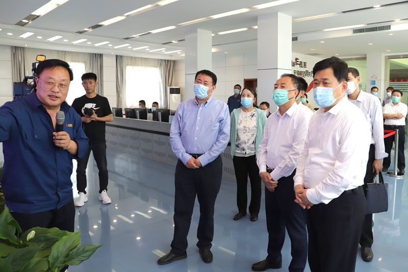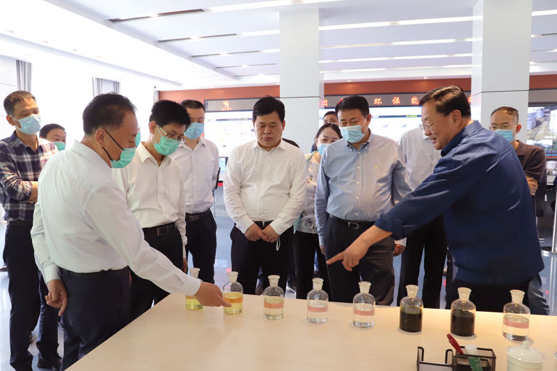 唐洲雁一行在司相芳總經理陪同下,首先到恒信科技實地察看生產情況,隨后來到集團能源控制中心,聽取關于企業產能規模,高水平環保設施和措施,榮信循環經濟產業園新能源新材料規劃項目,甲醇制乙醇、氫能源等產業鏈的發展趨勢、廣闊市場前景等情況介紹。唐洲雁對榮信的先進裝備、智能化水平、循環經濟產業鏈條、資源綜合利用、經濟生態社會效益以及未來產業布局規劃給予了高度評價。