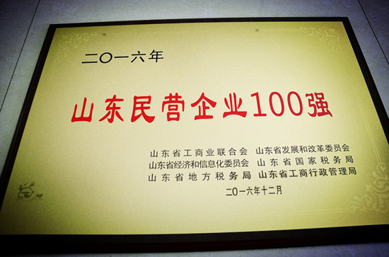 近日,山東工商聯公布2016年度山東民營企業百強名單,公司喜獲“2016年度山東民營企業100強”榮譽,而且排名由2015年度山東民企第99位上升至第78位。