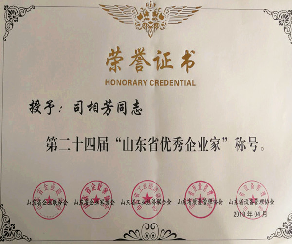 “第二十四屆山東省優秀企業家”由山東省企業聯合會、山東省企業家協會、山東省工業經濟聯合會、山東省質量管理協會、山東省設備管理協會(簡稱“省五會”)聯合評選產生。目的是為深入貫徹落實省委、省政府實施新舊動能轉換重大工程戰略部署,更好地激發企業家創新創業的積極性、主動性和創造性,弘揚企業家創新精神和工匠精神,發揮企業家示范作用,培育造就一支優秀企業家隊伍。全省共有100名企業家獲獎。