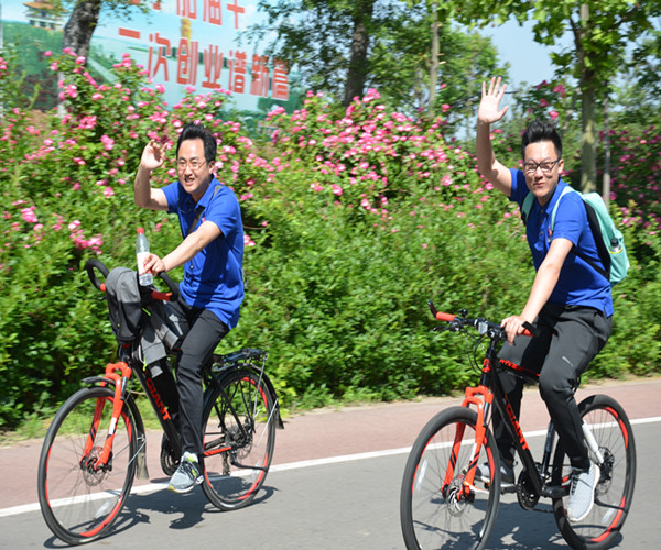 本次參與騎行活動的人員統一穿著印有集團公司LOGO的Polo衫,騎行的單車采用榮信建廠十周年統一發放的自行車,騎行路線主要是沿太白湖環湖騎行一周,路程約13km。為確保活動順利進行,公司在騎行沿途設置了補水站點,并安排若干后勤保障人員提供補給服務。