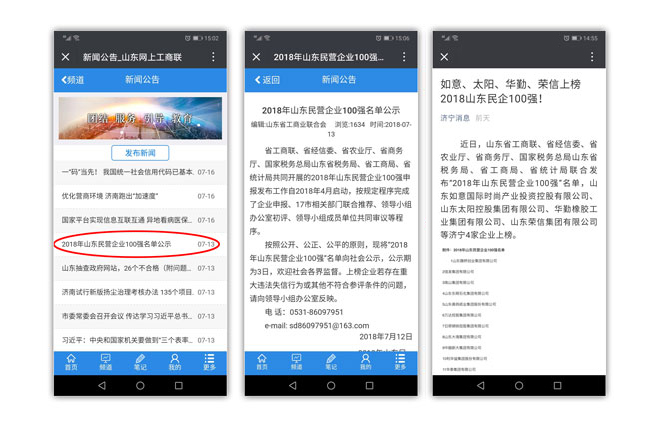 近日,山東省工商聯(lián)、省經(jīng)信委、省農(nóng)業(yè)廳、省商務(wù)廳、國家稅務(wù)總局山東省稅務(wù)局、省工商局、省統(tǒng)計(jì)局聯(lián)合發(fā)布“2018年山東民營企業(yè)100強(qiáng)”名單,山東榮信集團(tuán)有限公司以過硬的實(shí)力再度上榜。