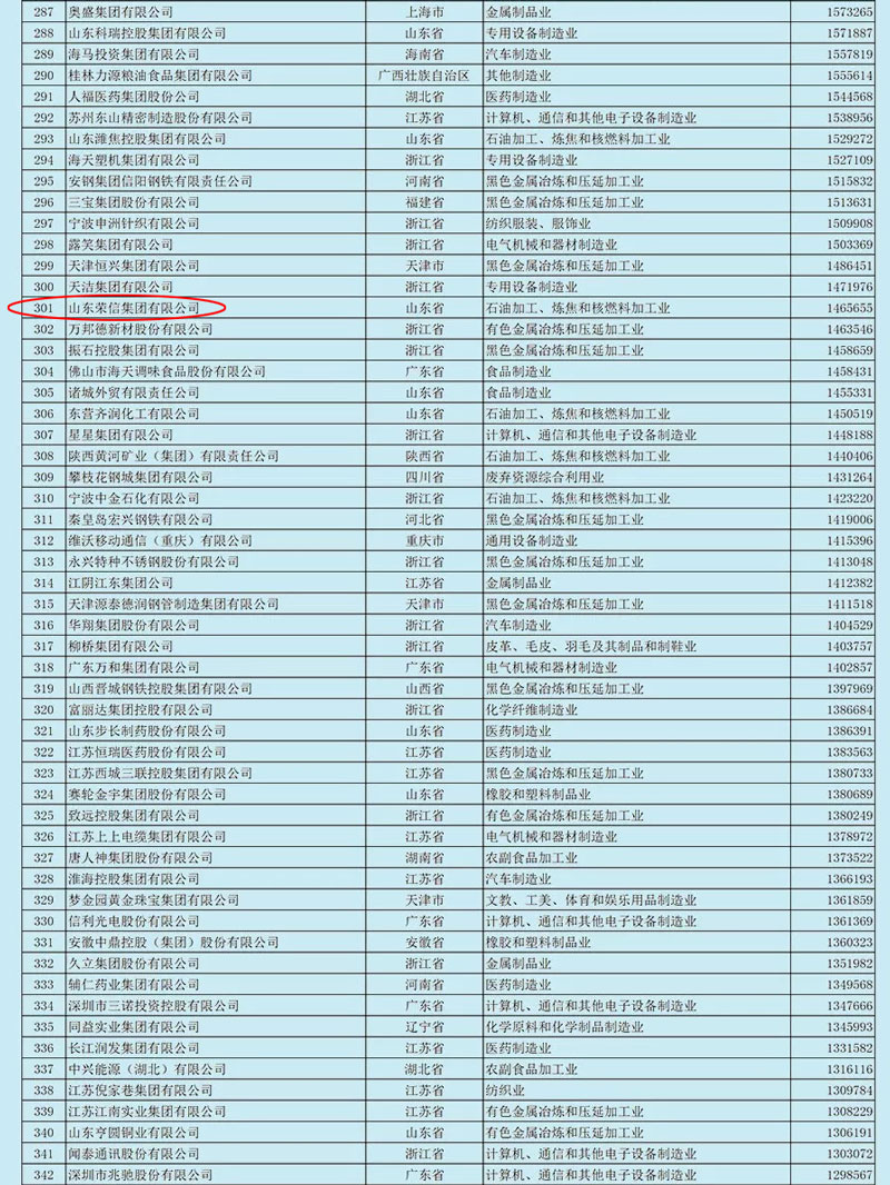 8月29日上午,由全國工商聯和遼寧省人民政府共同主辦的2018中國民營企業500強峰會在沈陽召開,會上發布了2018中國民營企業制造業500強名單。其中山東榮信集團榜上有名,位居榜單第301位。這是繼公司建業以來先后于2014年、2015年、2017年榮獲該項榮譽之后的又一重大殊榮。