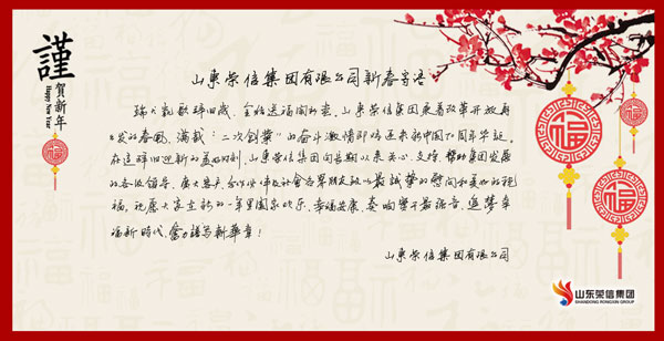 瑞犬凱歌辭舊歲,金豬送福鬧新春。山東榮信集團(tuán)乘著改革開放再出發(fā)的春風(fēng),滿載“二次創(chuàng)業(yè)”的奮斗激情,即將迎來新中國70周年的華誕。在這辭舊迎新的美好時(shí)刻,山東榮信集團(tuán)向長期以來關(guān)心、支持、幫助集團(tuán)發(fā)展的各級(jí)領(lǐng)導(dǎo)、廣大客戶、合作伙伴及社會(huì)各界朋友致以最誠摯的感謝和崇高的敬意!向全體榮信家人及其家屬表示最衷心的慰問和美好的祝福!祝愿大家在新的一年,闔家歡樂,幸福安康,奏響實(shí)干最強(qiáng)音,追夢(mèng)幸福新時(shí)代,奮力譜寫新華章!