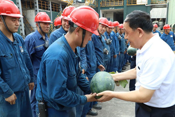 為關心員工身體健康,有效預防高溫中暑,確保大家全身心地投入到安全生產工作中去,6月18日,集團工會聯合辦公室、人力資源部、審計監察部等部門深入到保衛部、備煤分廠、機焦分廠、恒信科技等一線開展了“高溫送清涼”活動,帶去了組織的關懷與慰問,感謝大家在高溫下任勞任怨、兢兢業業、埋頭苦干,對他們表現出的良好榮信精神風貌表示贊揚和敬意。