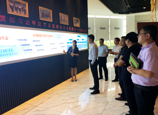 隨后,考察組還對特銳德電氣的黨建開展情況進行了參觀學習。特銳德根據企業實際建立生態黨建,打造命運共同體。通過特來電、特溫暖、特銳德的企業文化將企業黨建充分融合,做有溫度的黨建工作。靜思室、初心墻、警戒線、創新墻、結對三人行、特色三會、特分享等內容,不拘泥于形式,真正做到了把黨建工作通過和企業文化的整合融入到工作、生活中,從而使黨建工作真正能夠團結員工、促進企業高速發展。