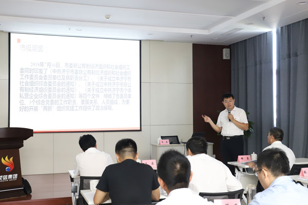 朱磊科長圍繞如何做好非公企業黨的建設工作,以黨建在非公企業的重要意義、重點任務、重要方法、典型案例四個方面為課題,深刻解讀了非公企業的黨建政策,闡述了非公企業的黨建重點任務措施,明確了企業黨建活動的方式方法。他講解到,黨組織在職工群眾中要發揮政治核心作用,在企業發展中要發揮政治引領作用,抓住市委實施“紅帆領航”行動機會,進一步提高非公企業黨務干部的政策理論素養和黨務工作能力,全面提升非公企業的黨建工作水平,促進黨建與業務工作和企業生產經營融合發展。朱磊科長旁征博引,深入淺出,通過剖析,讓大家深受教育,提高了認識。泰玻纖維鄒城公司黨委副書記方強在會上介紹了創新活動形式、豐富活動載體、推動企業黨組織建設經驗做法。