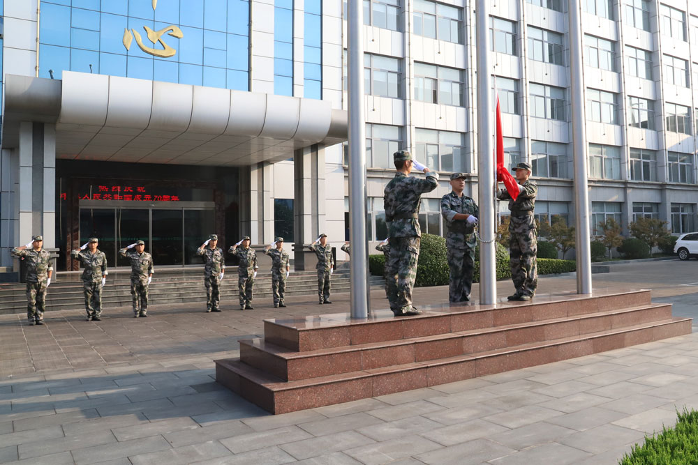 10月1日,山東榮信集團在研發中心樓前廣場舉行升旗儀式,慶祝偉大祖國成立70周年。集團總工程師、黨委委員杜漢雙,各部門管理人員及員工代表共600余人參加儀式。