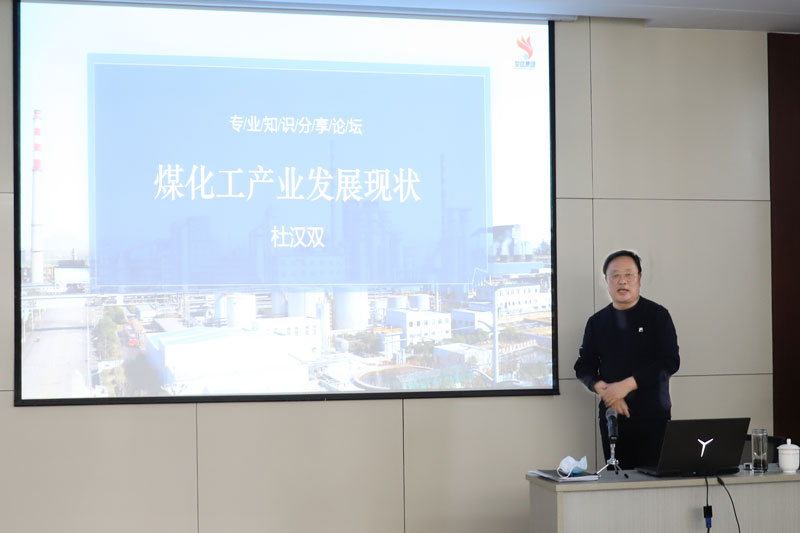 論壇上,杜漢雙總工程師從煤炭在能源中的地位、中國的能源結構講起,通過理論結合案例,緊緊圍繞現代煤化工的發展、煤化工產業鏈延伸具體展開分析,對公司二次創業中針狀焦工藝、煤制乙醇、氫氣島等系列項目建設作了全面深刻的詳細解讀,不僅讓大家清晰地了解行業發展現狀及企業項目優勢,更激發起大家干事創業的熱情。兩個多小時的授課,大家聽得專注,學得認真,記得仔細,十分解渴。授課結束后,杜總現場與大家進行了互動,解答了大家關心的相關問題。