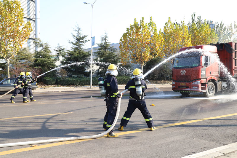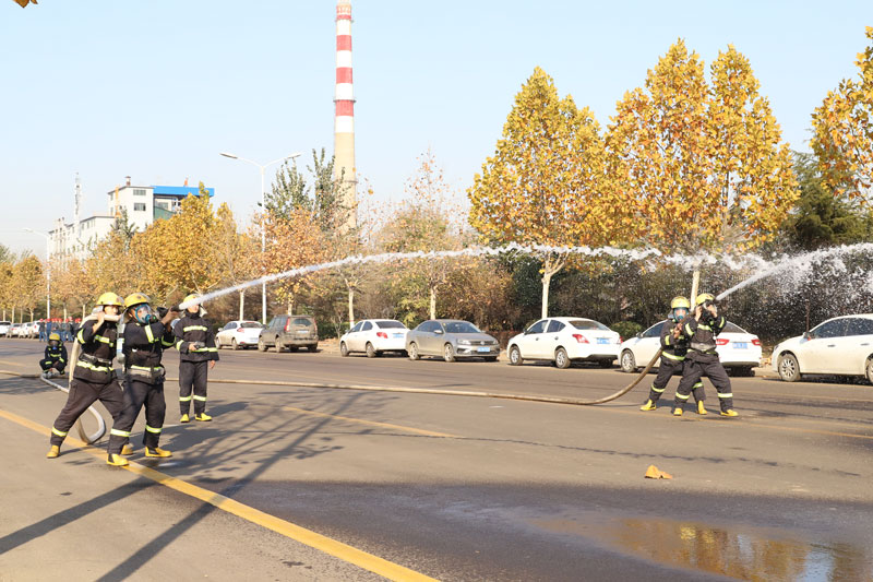 集團(tuán)副總經(jīng)理高小明,生產(chǎn)計(jì)劃部、安環(huán)部、各分廠、部室主要負(fù)責(zé)人等20余人親臨現(xiàn)場(chǎng)進(jìn)行觀摩指導(dǎo)。保衛(wèi)部40多人參加演練。下午14時(shí),練兵正式開始,在保衛(wèi)部副部長王文廣指揮下,首先開展了車輛著火事故消防應(yīng)急演練,消防指戰(zhàn)員以最快的速度趕赴現(xiàn)場(chǎng)處置,根據(jù)現(xiàn)場(chǎng)情況,下達(dá)作戰(zhàn)命令,明確任務(wù)分工,經(jīng)過5分鐘的緊張?zhí)幹茫饎?shì)撲滅,消防演習(xí)結(jié)束。