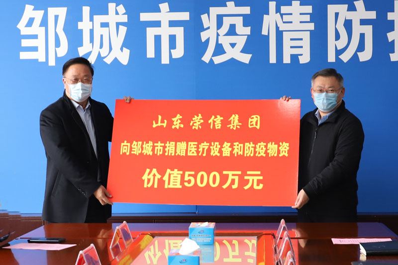 捐贈儀式在鄒城市新冠肺炎疫情防控指揮部舉行,鄒城市委副書記、市長杜慶節,恒信集團董事長、榮信集團總經理司相芳分別在儀式上講話。鄒城市領導孔慶國、吳婧和相關部門負責同志,榮信集團杜漢雙、高小明、司傳煜等領導參加捐贈儀式。